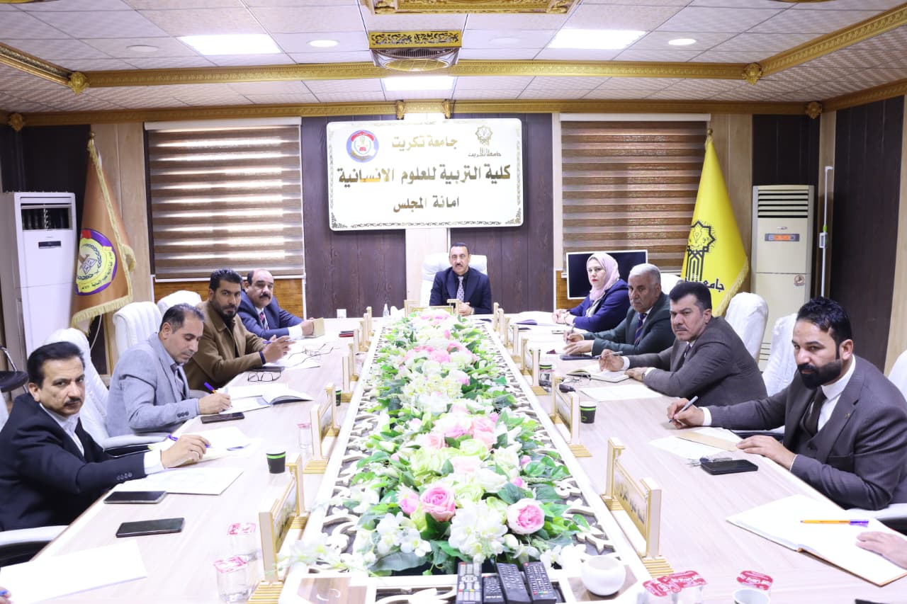 الحمد لله والصلاة والسلام على سيدنا محمد رسول الله وعلى اله واصحابه اجمعين. وبعد فأن كلية التربية للعلوم الانسانية هي امتداد لكلية التربية التي تأسست سنة (1992) وهي رابع كلية تم تاسيسها بعد كلية التربية للبنات وكلية الطب والهندسة في جامعة تكريت وبعد ان توسعت الدراسات الاولية والعليا فيها انشطرت بموجب الامر الجامعي ذي العدد(7/39/13237) في (26/8/2013) الى كليتين التربية للعلوم الصرفة والتربية للعلوم الانسانية وهي تضم سبعة اقسام علمية هي (اللغة العربية- اللغة الانكليزية - التربية الفنية- العلوم التربوية والنفسية- التاريخ- الجغرافية- علوم القران) وتسعي الكلية الى الاستمرار في رفد المجتمع بالتخصصات العلمية المطلوبة بعد ان خرجت نحو ثلاثة وعشرون جيلاً- ماسكين بالعلم والمعرفة وفق الاًساليب الحديثة في التعلم –واعتماد المناهج العلمية الرصينة في البحث العلمي. لتكون مخرجات الكلية قادرة على التنافس في سوق العمل. تضم الكلية (61) قاعة درس تتباين في اعداد حسب الاقسام العلمية ومهياة بكافة مستلزمات الدرس و خمس قاعات مناقشة فضلا عن ادارات كاملة للاقسام العلمية تم تهيئتها بمتطالبات الادارة كافة . كما وتضم الكلية مختبر للحاسبات وقاعة انترنت تسع (50) طالب ومكتبة تسع لاكثر من (80) طالب مزودة بالمصادر العلمية في جميع التخصيصات .ويوجد في الكلية مختبرGIS في اختصاص الجغرافية ومشغل فني لطلبة قسم التربية الفنية ومختبر للصوت في قسم اللغة الانكليزية . بلغ عدد الطلبة في الكلية للعام الدراسي 2025-2026 (7770) طالب وطالبة موزعين بواقع (5018) طالب وطالبة في الدراسات الصباحية و(2752) طالب وطالبة في الدراسات المسائية. وقد تم قبول (449) طالباً وطالبة في الدراسات العليا للعام الدراسي 2025-2026 .اما عدد التدريسيين في الكلية فقد بلغ (398) تدريسي موزعين حسب التخصصات والالقاب العلمية بواقع(110) لقب استاذ و(72) استاذ مساعد و(86) لقب مدرس و(126)لقب مدرس مساعد وبلغ عدد الموظفين (91) موظفاً. وتتطلع الكلية الان الى الاتجاه نحو تحقيق مراتب متقدمة في الجودة والاعتماد الاكاديمي من خلال الشروع بتشكيل لجان متخصصة تراوحت هذه اللجان بين خدمة المجتمع وتحديد نقاط الضعف في الكلية لغرض معالجتها وتحديد نقاط القوة لغرض تطويرها ولجان اخرى ركزت على كفاءة الأداء اداريا وعلميا .ووصلنا الى نتائج متقدمة في هذا الموضوع. ونسال الله عز وجل ان يوفقنا في مسعانا خدمة لجامعتنا العزيزة.