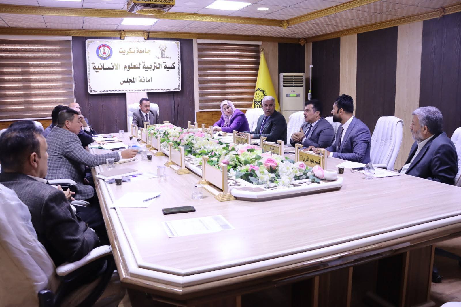 الحمد لله والصلاة والسلام على سيدنا محمد رسول الله وعلى اله واصحابه اجمعين. وبعد فأن كلية التربية للعلوم الانسانية هي امتداد لكلية التربية التي تأسست سنة (1992) وهي رابع كلية تم تاسيسها بعد كلية التربية للبنات وكلية الطب والهندسة في جامعة تكريت وبعد ان توسعت الدراسات الاولية والعليا فيها انشطرت بموجب الامر الجامعي ذي العدد(7/39/13237) في (26/8/2013) الى كليتين التربية للعلوم الصرفة والتربية للعلوم الانسانية وهي تضم سبعة اقسام علمية هي (اللغة العربية- اللغة الانكليزية - التربية الفنية- العلوم التربوية والنفسية- التاريخ- الجغرافية- علوم القران) وتسعي الكلية الى الاستمرار في رفد المجتمع بالتخصصات العلمية المطلوبة بعد ان خرجت نحو ثلاثة وعشرون جيلاً- ماسكين بالعلم والمعرفة وفق الاًساليب الحديثة في التعلم –واعتماد المناهج العلمية الرصينة في البحث العلمي. لتكون مخرجات الكلية قادرة على التنافس في سوق العمل. تضم الكلية (59) قاعة درس تتباين في اعداد حسب الاقسام العلمية ومهياة بكافة مستلزمات الدرس واربع قاعات مناقشة-فضلا عن ادارات كاملة للاقسام العلمية تم تهيئتها بمتطالبات الادارة كافة . كما وتضم الكلية مختبر للحاسبات وقاعة انترنت تسع (50) طالب ومكتبة تسع لاكثر من (80) طالب مزودة بالمصادر العلمية في جميع التخصيصات .ويوجد في الكلية مختبرGIS في اختصاص الجغرافية ومشغل فني لطلبة قسم التربية الفنية. بلغ عدد الطلبة في الكلية للعام الدراسي 2023-2024 (5382) طالب وطالبة موزعين بواقع (3616) طالب وطالبة في الدراسات الصباحية و(2459 ) طالب وطالبة في الدراسات المسائية. وقد تم قبول (382) طالباً وطالبة في الدراسات العليا للعام الدراسي 2024 ومن الجدير بالذكر انه قد تخرج في الكلية من الدراسات العليا منذ عام 1995 وحتى عام 2023- 2024 ( 13440) طالباً وطالبة موزعين على الأقسام العلمية كافة ماعدا قسم التربية الفنية كونه قسما حديثا. اما عدد التدريسيين في الكلية فقد بلغ( 335)تدريسين موزعين حسب التخصصات والالقاب العلمية بواقع( 99) لقب استاذ و(82 ) استاذ مساعد و( 63) لقب مدرس و(95 )لقب مدرس مساعد وبلغ عدد الموظفين (104) موظفاً. وتتطلع الكلية الان الى الاتجاه نحو تحقيق مراتب متقدمة في الجودة والاعتماد الاكاديمي من خلال الشروع بتشكيل لجان متخصصة تراوحت هذه اللجان بين خدمة المجتمع وتحديد نقاط الضعف في الكلية لغرض معالجتها وتحديد نقاط القوة لغرض تطويرها ولجان اخرى ركزت على كفاءة الأداء اداريا وعلميا .ووصلنا الى نتائج متقدمة في هذا الموضوع. ونسال الله عز وجل ان يوفقنا في مسعانا خدمة لجامعتنا العزيزة.