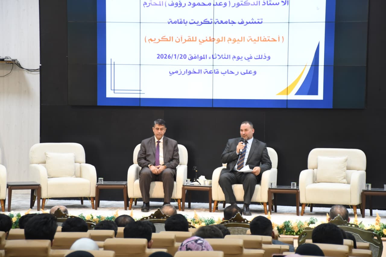 ﴿إِنَّا نَحْنُ نَزَّلْنَا الذِّكْرَ وَإِنَّا لَهُ لَحَافِظُونَ﴾جانب من مشاركة كلية التربية للعلوم الإنسانية في الاحتفالية المركزية التي اقامتها جامعة تكريت بمناسبة اليوم الوطني للقرآن الكريم