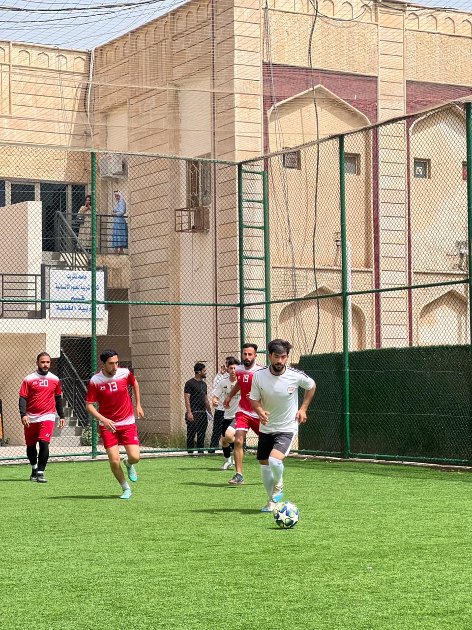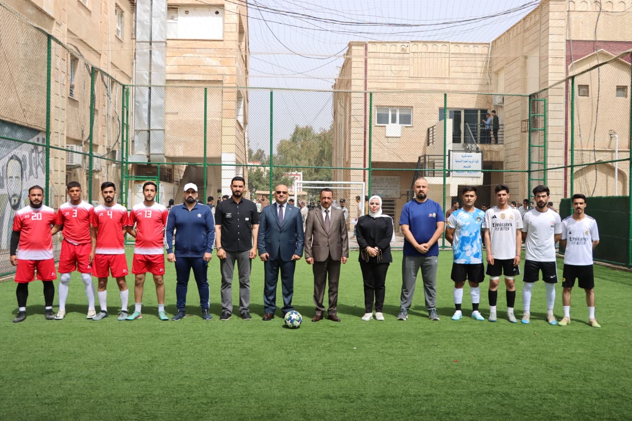 افتتح السيد عميد كلية التربية للعلوم الإنسانية الاستاذ الدكتور عماد حميد احمد ، اليوم الأحد الموافق (٢٠٢٦/٤/١٩) برفقة السيد معاون العميد للشؤون الإدارية الاستاذ الدكتور عادل صالح علاوي ، والسيدة معاون العميد لشؤون الطلبة المدرس الدكتورة ريم قاسم حاتم، بطولة التحدي لكرة القدم بين اقسام الكلية والتي تقيمها شعبة النشاطات الطلابية متمثلةً بالمدرس المساعد علاء جمعة .