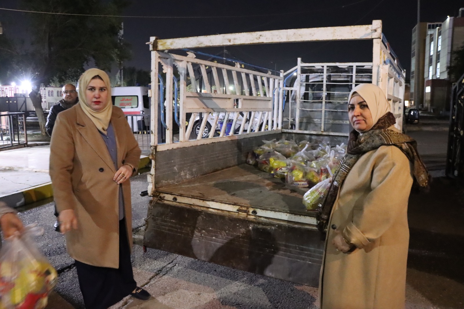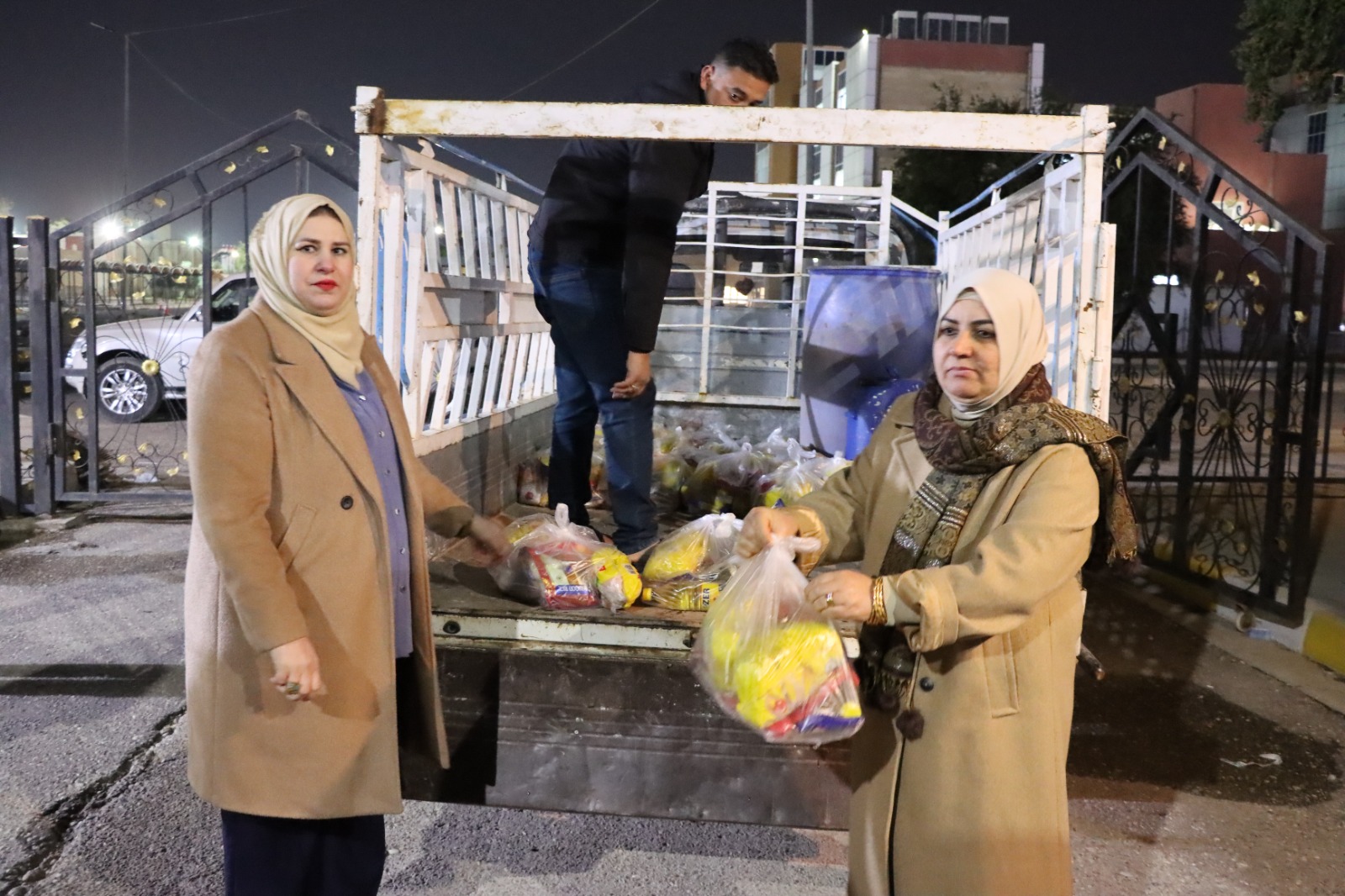 وفي الوقت نفسه زارت امين مجلس الكلية الأستاذ الدكتورة انتصار نصيف جاسم وعدد من التدريسيات في كليتنا الاقسام الداخلية للطالبات بتوجيه من السيد عميد الكلية لتقديم سلات غذائية لهم ، والاستماع إلى احتياجاتهم ومتطلباتهم .