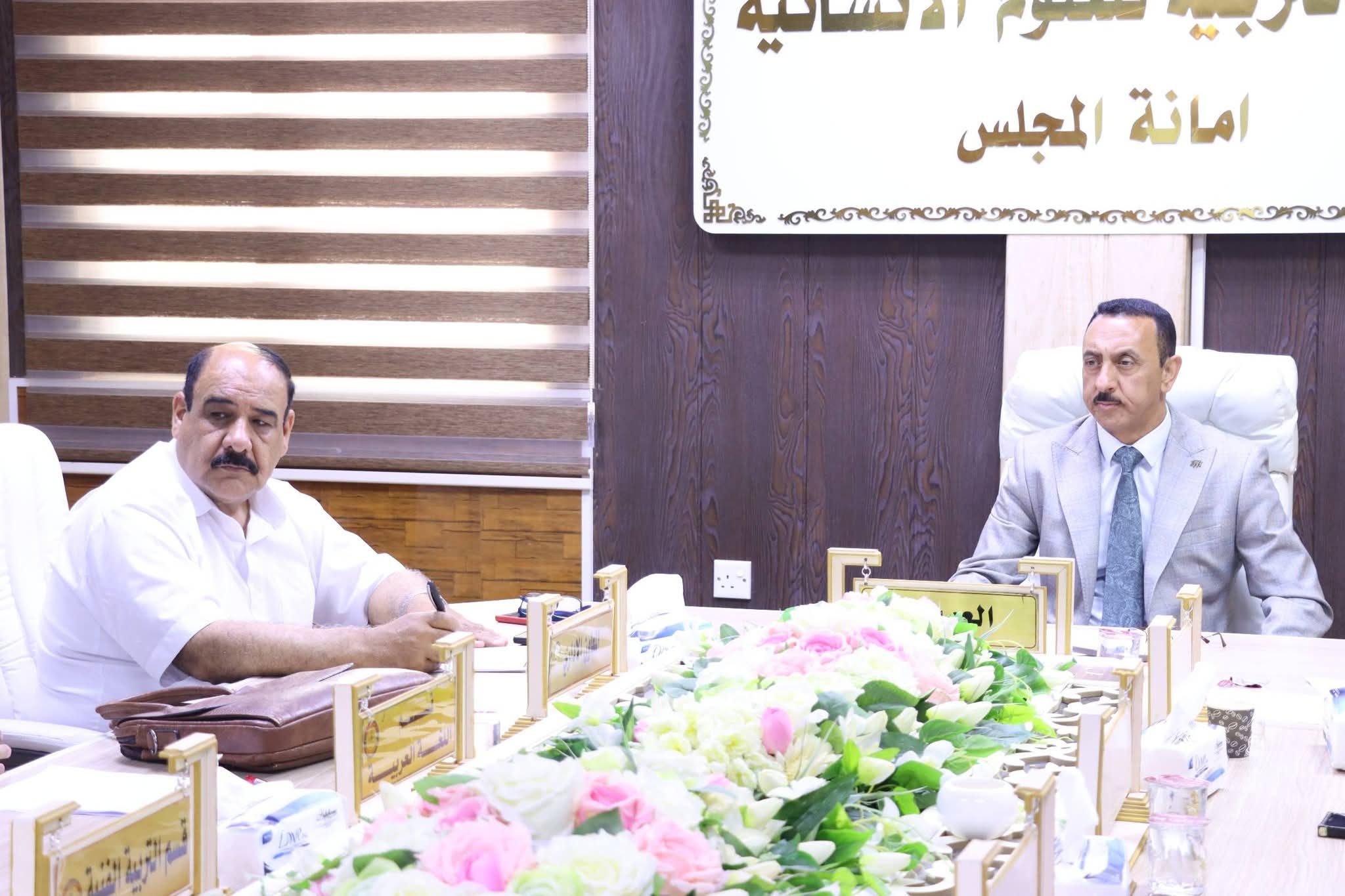 ترأس السيد عميد كلية التربية للعلوم الإنسانية الاستاذ الدكتور عماد حميد احمد اجتماع اللجنة المركزية للاعتماد المؤسسي اليوم الثلاثاء الموافق (٢٠٢٦/٤/٢٨) وذلك لمتابعة الإجراءات المتخذة في مختلف الشعب والوحدات الأكاديمية والإدارية والوقوف على مدى مطابقتها لمعايير الجودة والاعتماد المؤسسي ، وناقش الاجتماع آليات تطوير الأداء الأكاديمي والإداري في الكلية وتفعيل استراتيجيات التقييم الذاتي إلى جانب متابعة تنفيذ خطط التحسين المستمر بما يتوافق مع المعايير الوطنية والدولية المعتمدة في مجال الجودة.