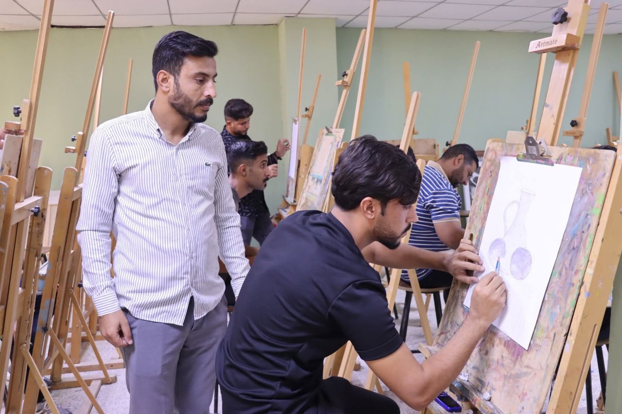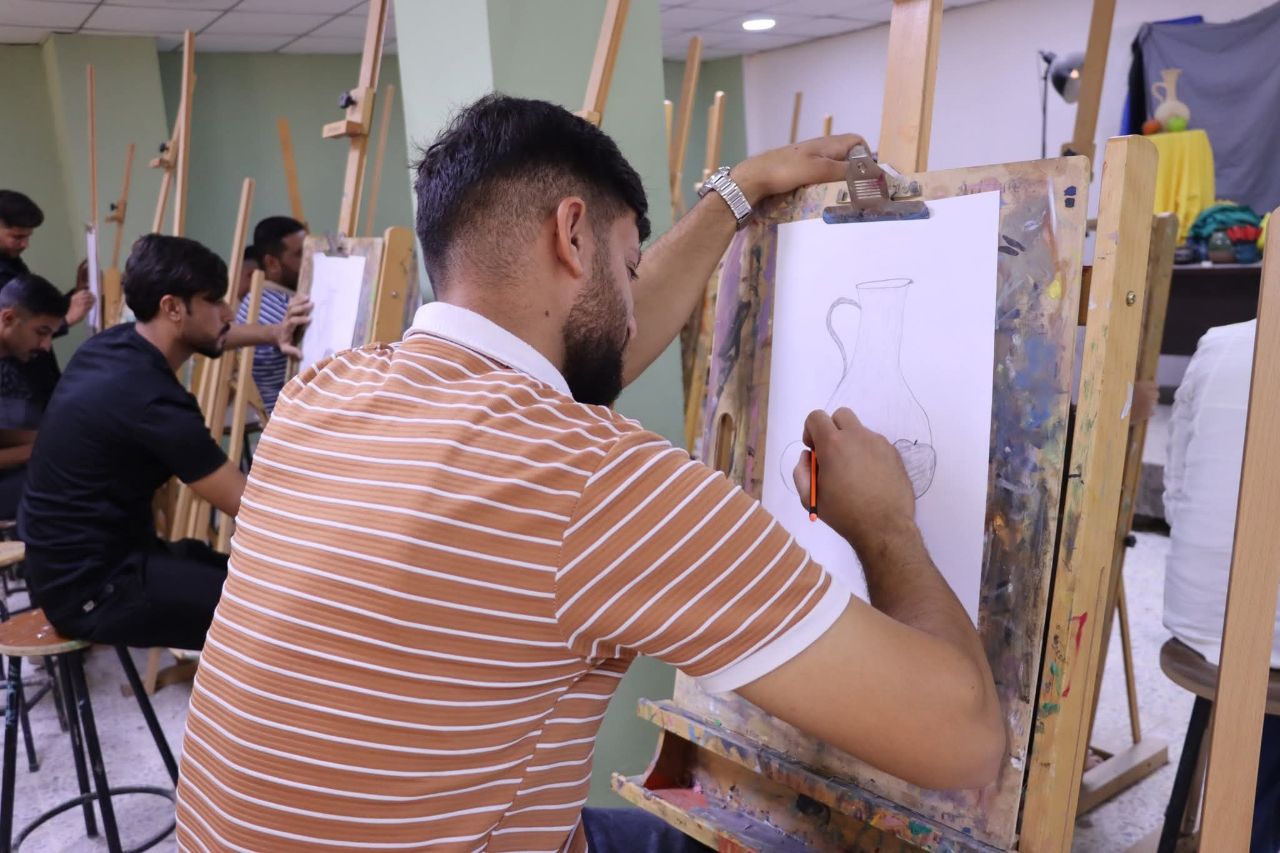 جانب من اختبار الطلبة المتقدمين للقبول في قسم التربية الفنية - الدراسة المسائية للعام الدراسي 2025-2026