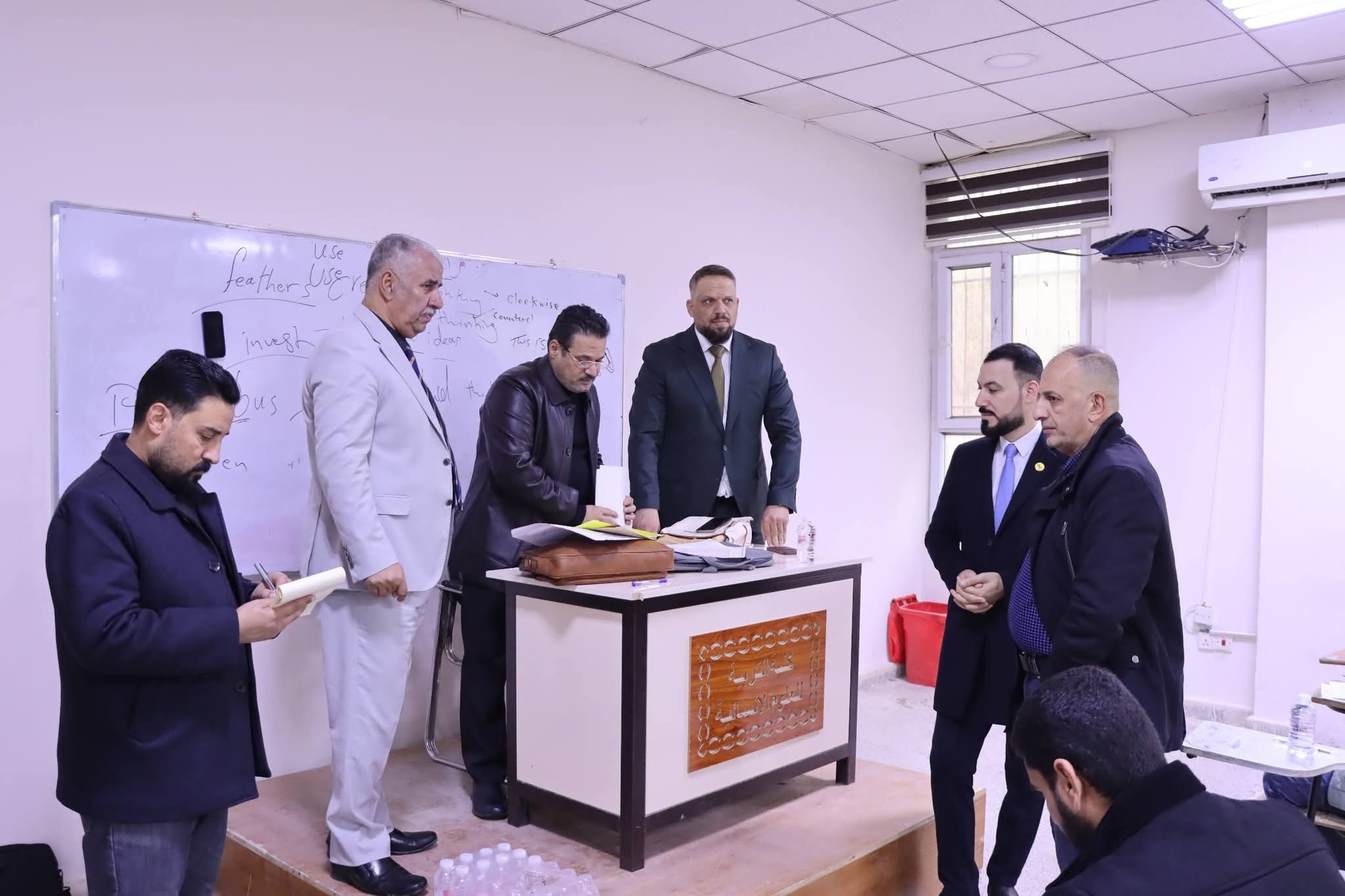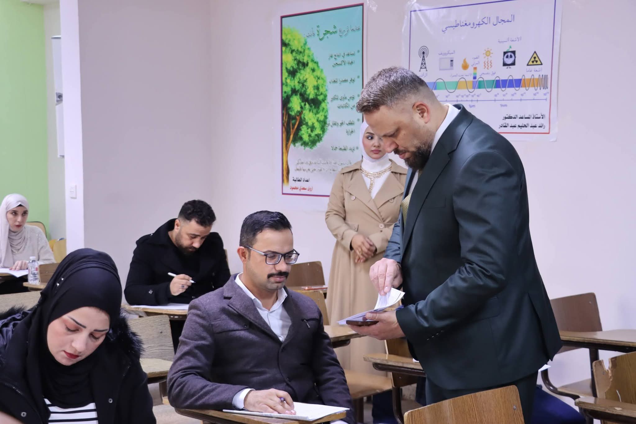 جانب من الامتحانات النهائية لطلبة الدراسات العليا (الكورس الأول) للعام الدراسي ٢٠٢٥-٢٠٢٦ وزيارة اللجنة المركزية في رئاسة الجامعة للقاعات الامتحانية اليوم الأحد الموافق (٢٠٢٥/١٢/٢٨)