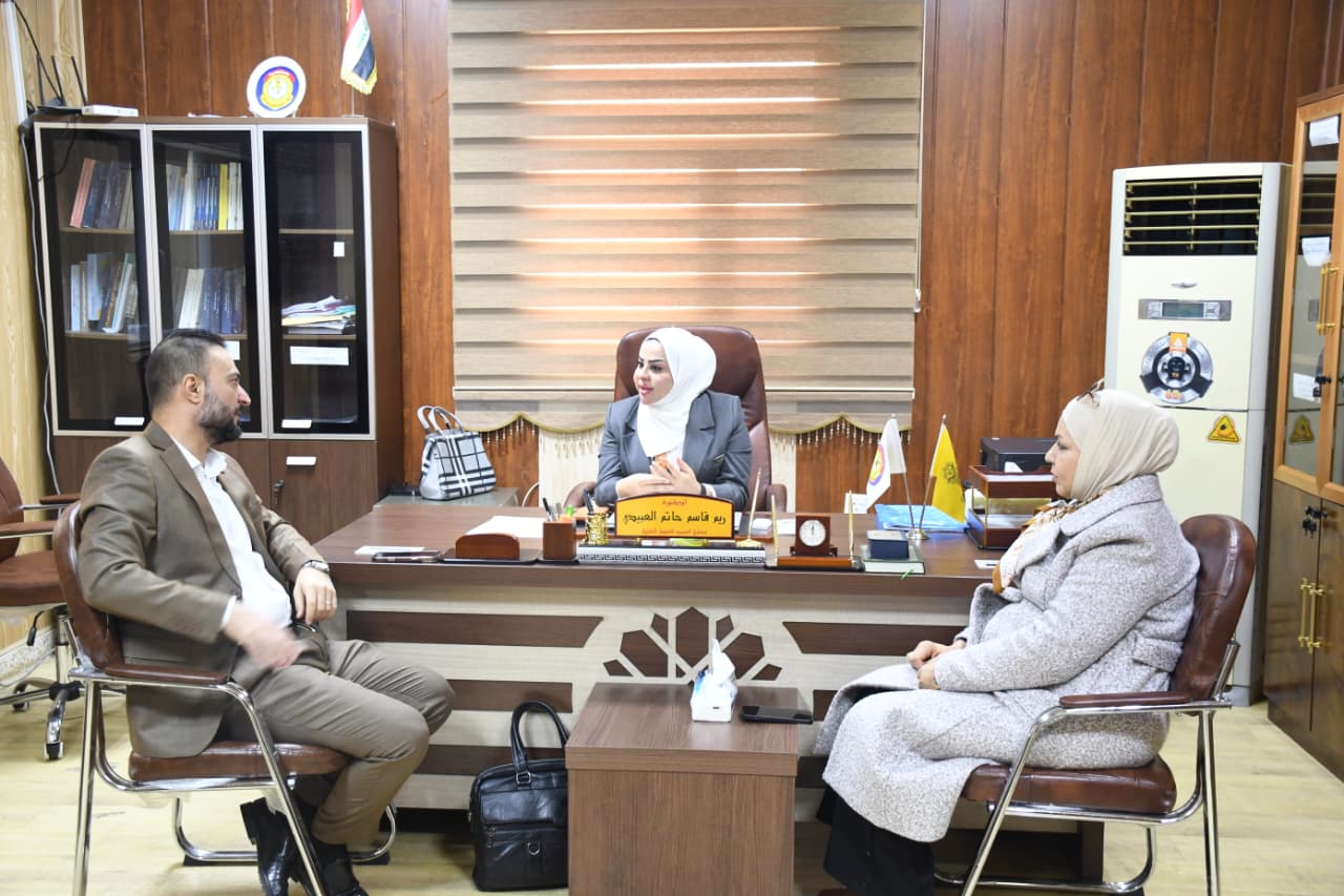 بتوجيهٍ من السيد عميد كلية التربية للعلوم الإنسانية الأستاذ الدكتور عماد حميد أحمد، عقدت المدرس الدكتورة ريم قاسم حاتم، معاون العميد للشؤون العلمية، اجتماعاً مع السادة مسؤولي الشعب التابعة لمكتب المعاون العلمي في الكلية، اليوم الأحد الموافق (٢٠٢٦/٣/١٥) وذلك لمناقشة عددٍ من الموضوعات الإدارية والعلمية المتعلقة بسير العمل في الشعب التابعة للمكتب.