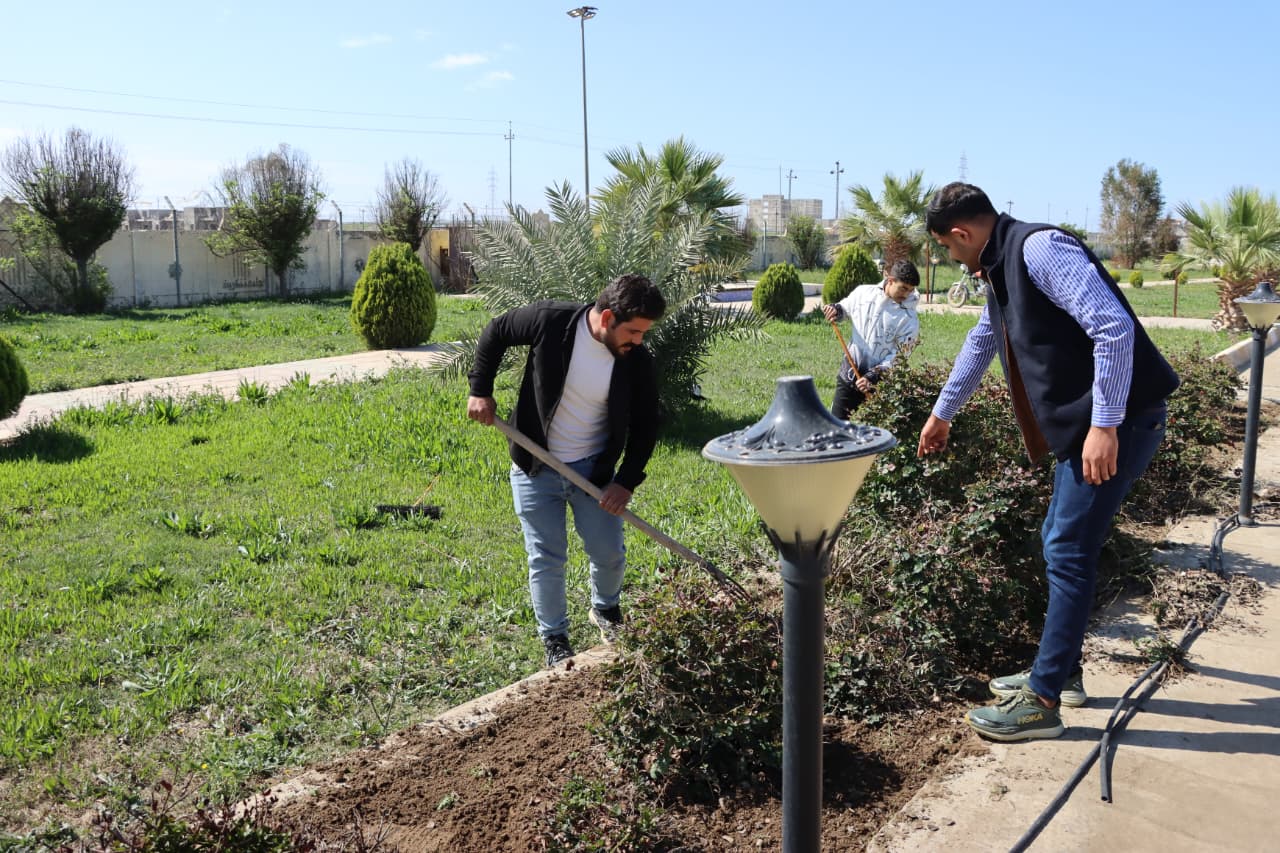 بتوجيه مباشر من قبل السيد عميد كلية التربية للعلوم الإنسانية الاستاذ الدكتور عماد حميد احمد وبإشراف السيد معاون العميد للشؤون الإدارية الاستاذ الدكتور عادل صالح علاوي قامت كليتنا بحملة واسعة لتأهيل الحدائق الخارجية للكلية اليوم الاثنين الموافق (٢٠٢٦/٣/٣٠) ، اذ تثمن عمادة الكلية جهود شعبة الحدائق والخدمات لجهودهم المبذولة من أجل اظهار الكلية بابهى صورة ، راجين لهم دوام الموفقية والعطاء خدمة لكليتنا ولجامعتنا الحبيبة.