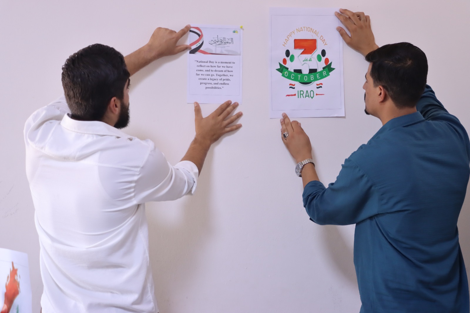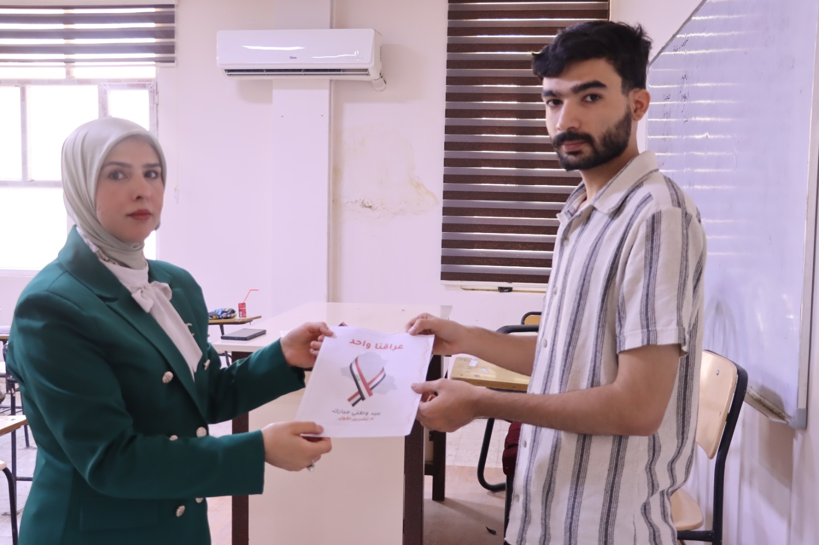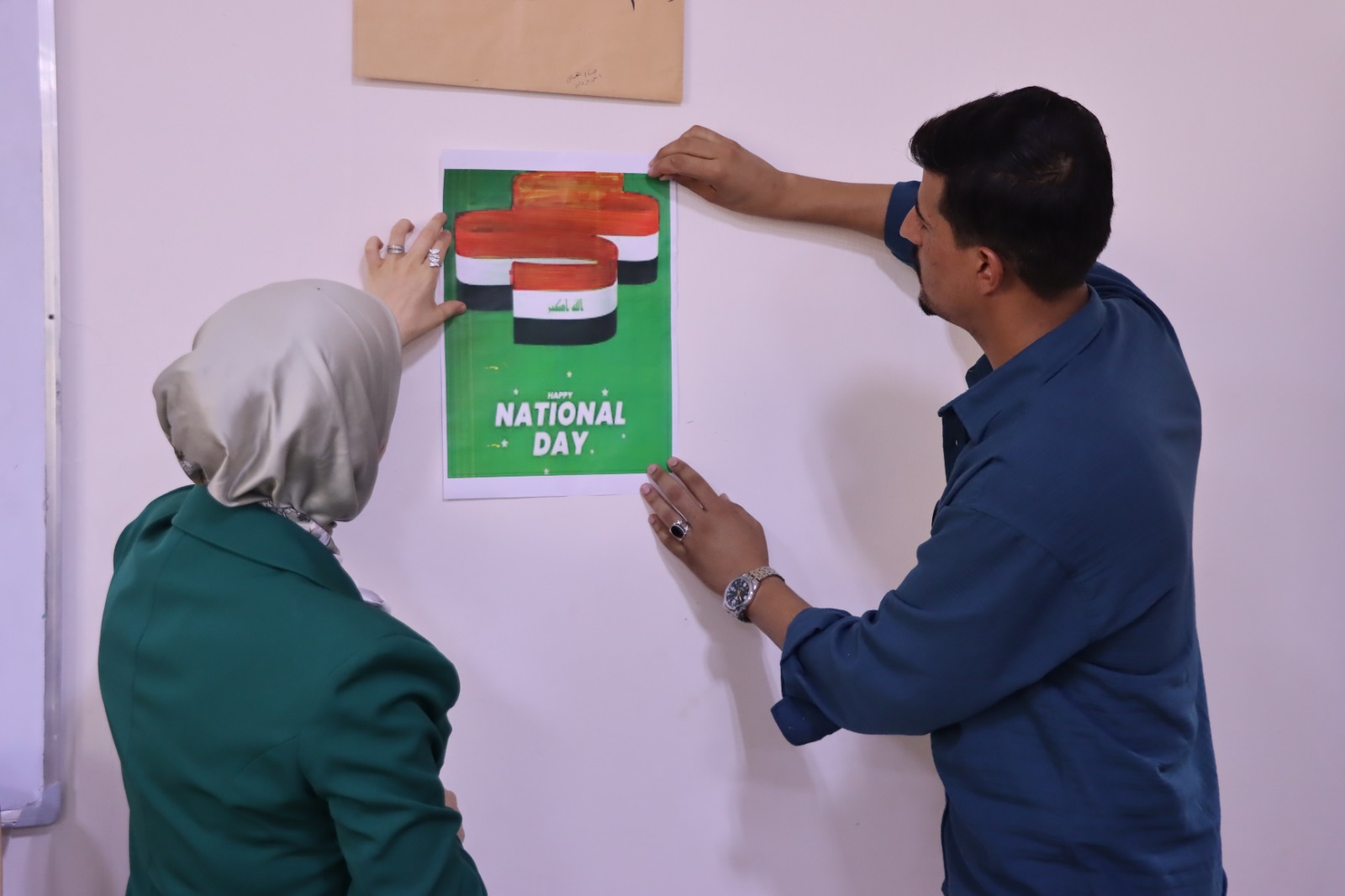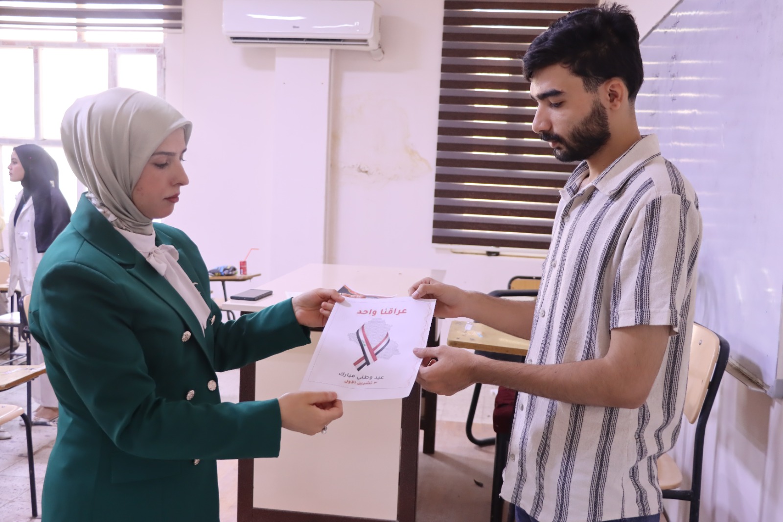 وتضمنت الأنشطة توزيع الأعلام العراقية والورود والرسائل التحفيزية والبوسترات التوعوية على الأساتذة والموظفين والطلبة، في أجواء جسدت روح الانتماء الوطني، وعكست معاني الاعتزاز بالهوية العراقية، والتلاحم بين منتسبي الكلية وطلبتها بهذه المناسبة العزيزة على قلوب الجميع.