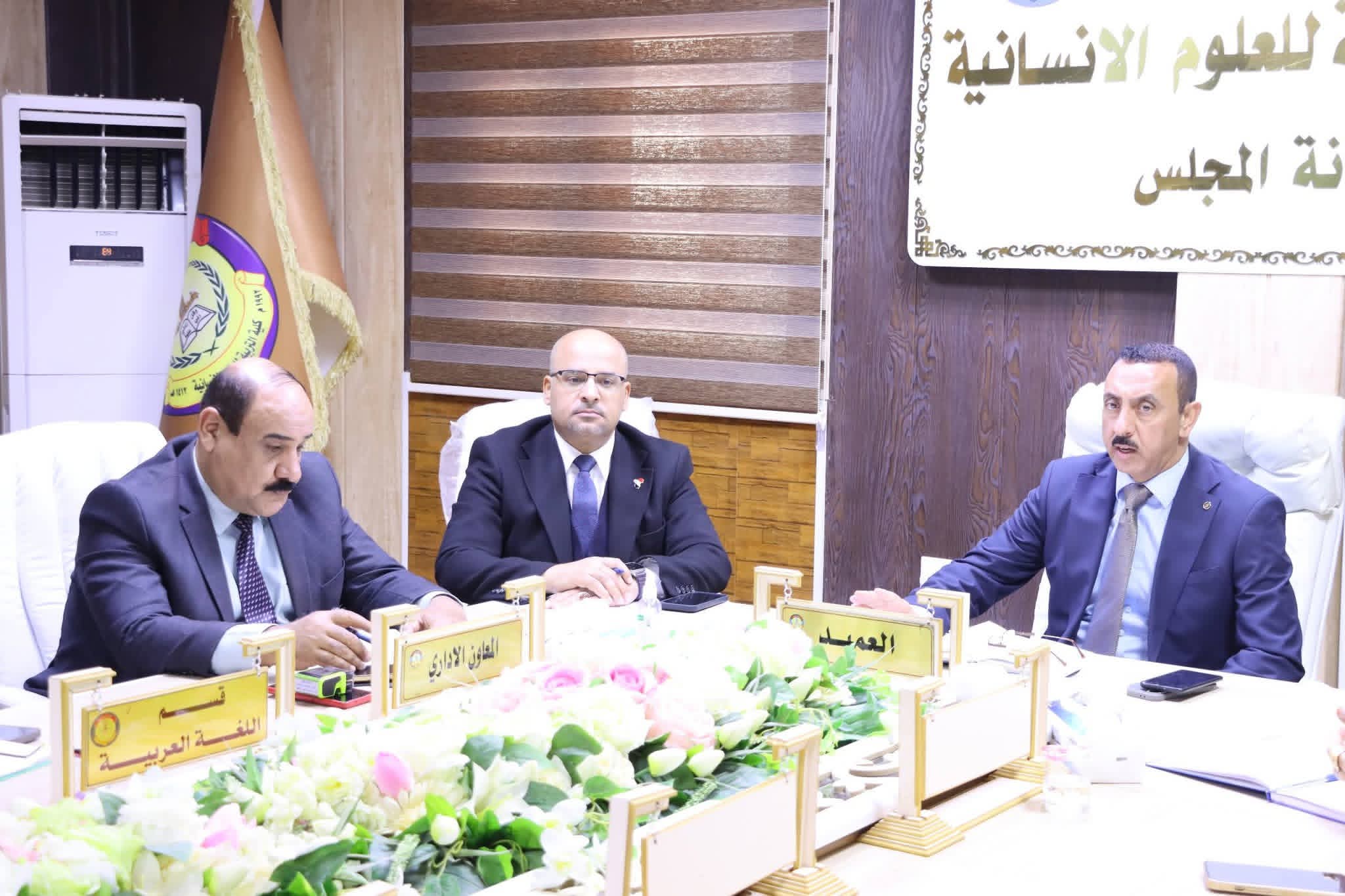 عقد مجلس كلية التربية للعلوم الانسانية اليوم الأحد الموافق (٢٠٢٦/١/١١) جلسته الثانية عشرة للعام الدراسي ٢٠٢٥-٢٠٢٦ ، برئاسة السيد عميد الكلية الاستاذ الدكتور عماد حميد أحمد وبحضور السادة اعضاء مجلس الكلية ، اذ تضمنت الجلسة مناقشة امور عدة تخص لمصلحة العامة للكلية ومد جسور التعاون العلمي بين الكليات .