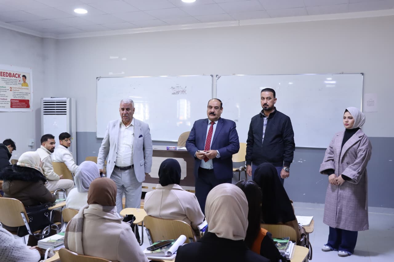 بتوجيه من السيد عميد كلية التربية للعلوم الإنسانية الأستاذ الدكتور عماد حميد أحمد، تفقد كلٌّ من السيد معاون العميد للشؤون العلمية الأستاذ الدكتور رشيد لطيف إبراهيم، والسيد معاون العميد لشؤون الطلبة الأستاذ الدكتور مثنى مشعان خلف، والسيد مدير وحدة التسجيل المدرس الدكتور كمال صالح غضيب ،الأقسام العلمية وقاعات محاضرات طلبة الدراسات الأولية (المرحلة الأولى) في الكلية، اليوم الثلاثاء الموافق (٢٠٢٦/١/٢٠) للاطلاع على واقع القاعات الدراسية واحتياجات الطلبة، بما يسهم في توفير بيئة أكاديمية مناسبة تسهم في إنجاح مسيرتهم العلمية.