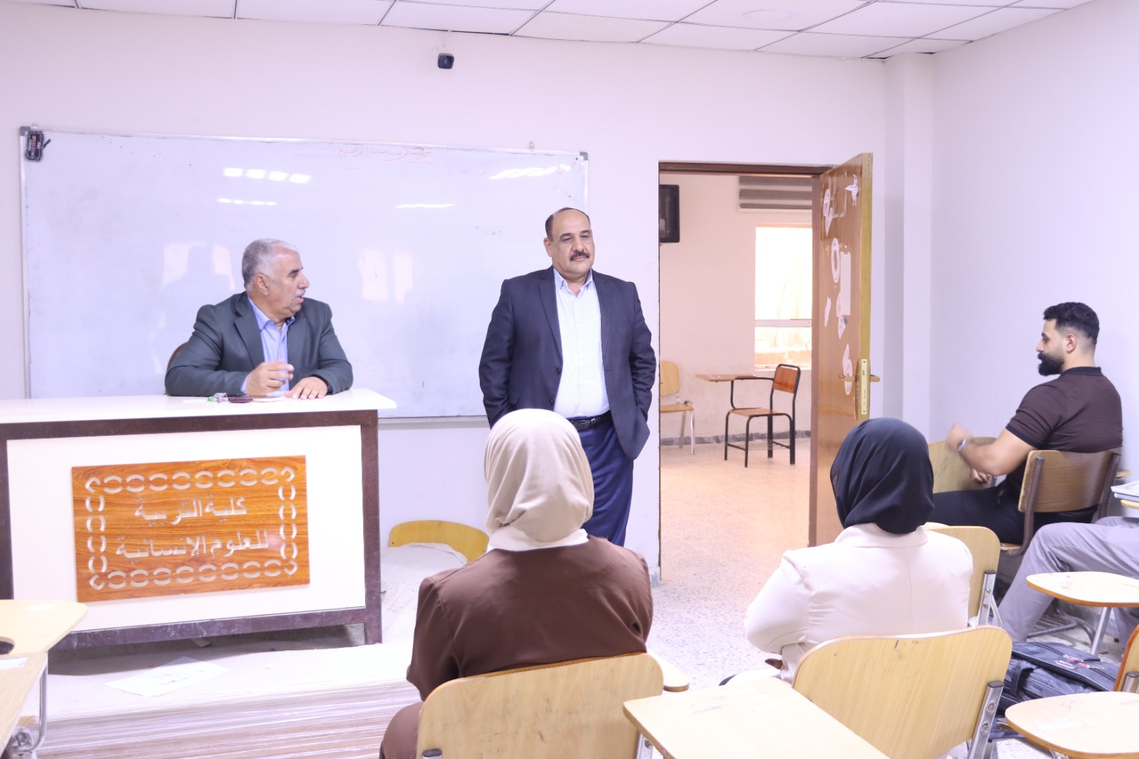 بتوجيه من السيد عميد كلية التربية للعلوم الإنسانية الأستاذ الدكتور عماد حميد أحمد، تفقد كلٌّ من السيد معاون العميد للشؤون العلمية الأستاذ الدكتور رشيد لطيف إبراهيم، والسيد معاون العميد لشؤون الطلبة الأستاذ الدكتور مثنى مشعان خلف، الأقسام العلمية وقاعات محاضرات طلبة الدراسات المسائية في الكلية، اليوم الثلاثاء الموافق (٢٠٢٥/١٠/١٤) للاطلاع على واقع القاعات الدراسية واحتياجات الطلبة، بما يسهم في توفير بيئة أكاديمية مناسبة تسهم في إنجاح مسيرتهم العلمية. راجين لجميع الطلبة دوام الموفقية والنجاح في مشوارهم الدراسي . #شعبة_الإعلام_والاتصال_الحكومي كلية التربية للعلوم الإنسانية – جامعة تكريت