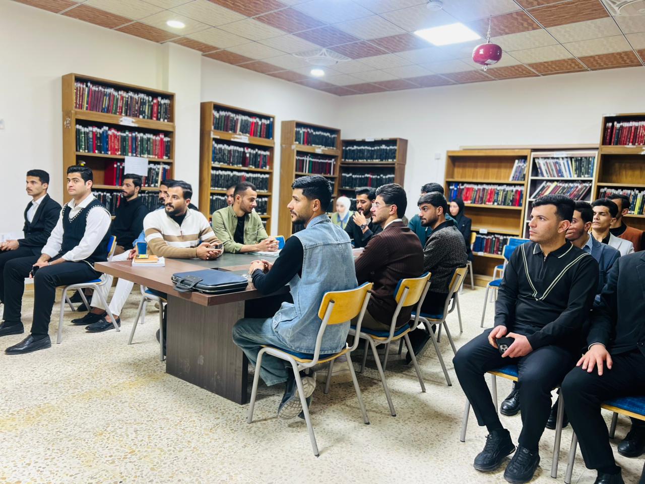 وقام الطلبة بجولة موسعة داخل أقسام المكتبة، استمعوا خلالها إلى شرح وافٍ عن مكوّناتها، ونظام الفهرسة، وأساليب البحث المتاحة، فضلًا عن الاطلاع على القسم الخاص بالرسائل الجامعية والبحوث العلمية وما يوفره من مصادر علمية مهمة لطلبة الدراسات الأولية والعليا.