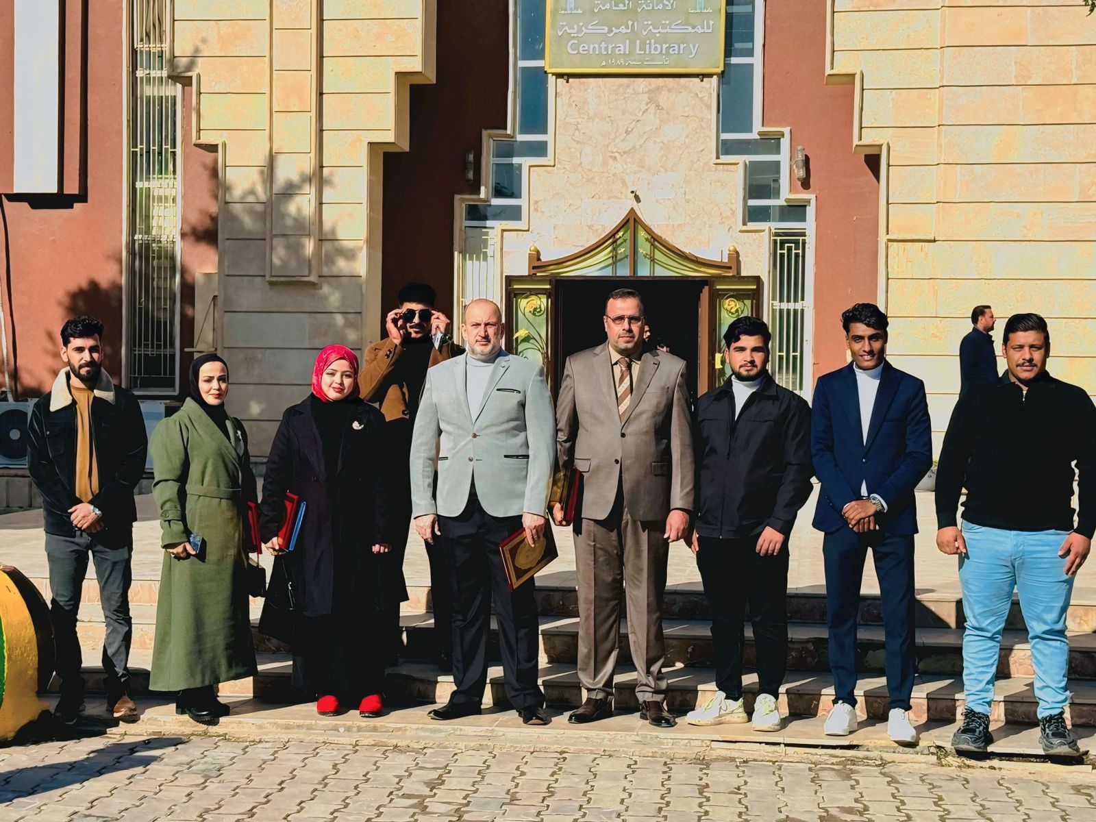 بتوجيه من السيد عميد كلية التربية للعلوم الإنسانية الأستاذ الدكتور عماد حميد أحمد، نظّم أساتذة قسم علوم القرآن والتربية الإسلامية اليوم الاثنين الموافق (٢٠٢٦/١/٥) زيارة علمية لعدد من طلبة القسم إلى المكتبة المركزية ، وتخللت الزيارة تقديم نبذة تعريفية عن طبيعة عمل المكتبة، والمصادر والكتب التي تضمها، إضافةً إلى شرح آلية استعارة الكتب والخدمات المقدمة للطلبة والباحثين. كما هدفت الزيارة إلى إطلاع الطلبة على أنواع المصادر المتوفرة وطرق البحث عنها واستثمارها في دراستهم وبحوثهم العلمية.