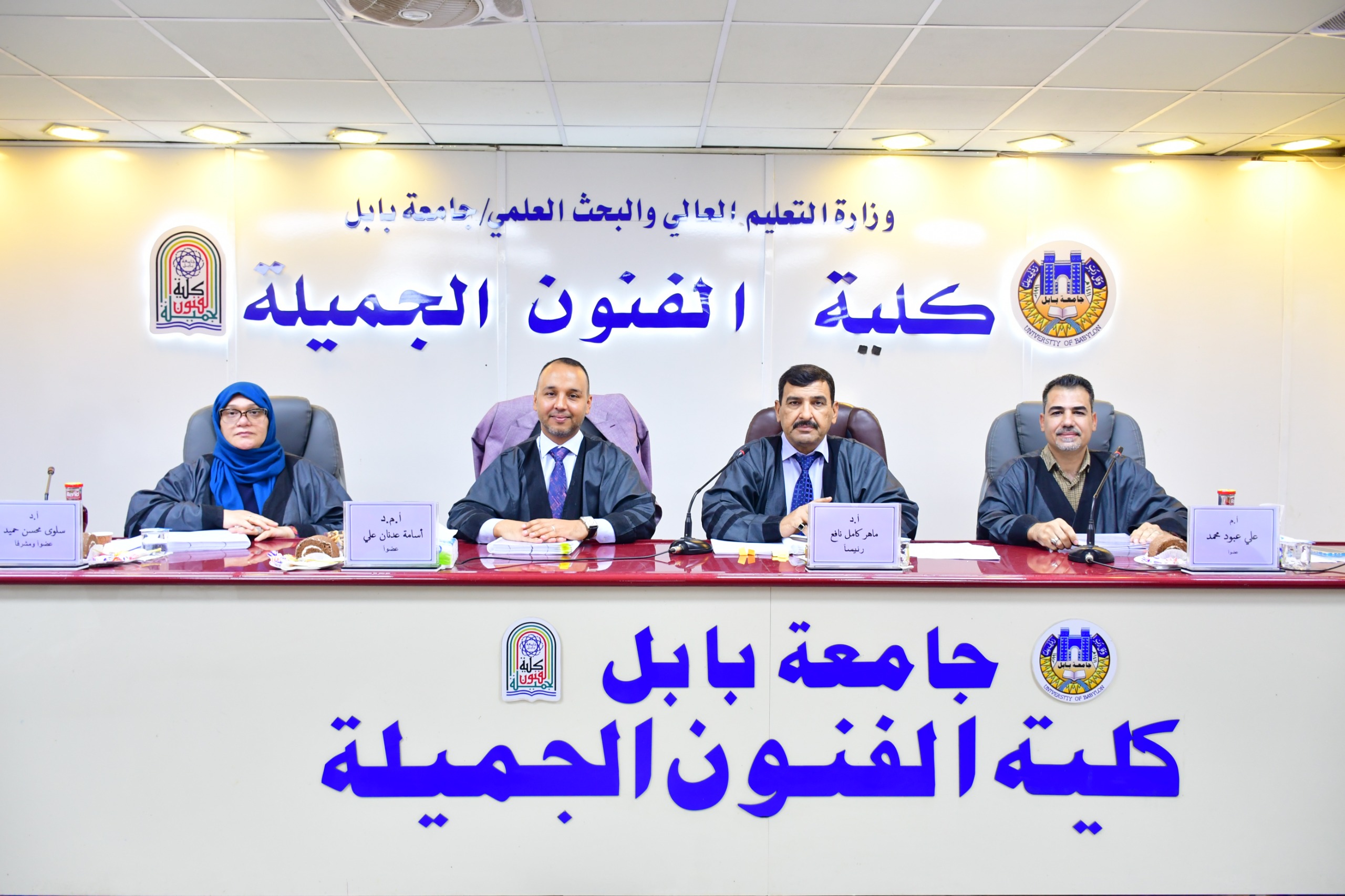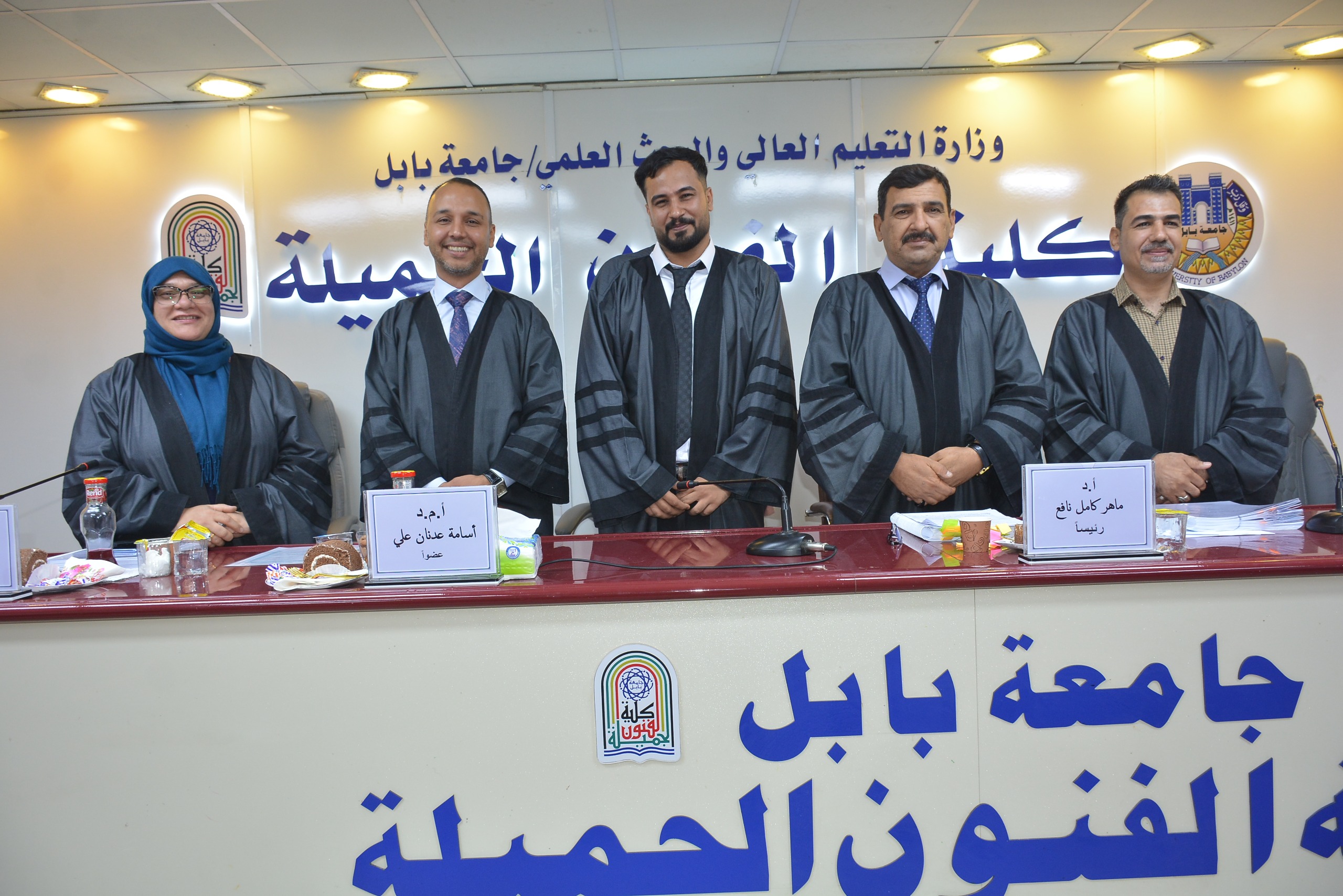 شارك التدريسي في كلية التربية للعلوم الإنسانية قسم التربية الفنية الاستاذ المساعد الدكتور اسامة عدنان علي في عضوية لجنة مناقشة رسالة ماجستير في جامعة بابل - كلية الفنون الجميلة للطالب (ابراهيم حاتم جابر) عن رسالتها الموسومة (التشكيل الجمالي للفن الجداري المعاصر - دراسة تحليلية)