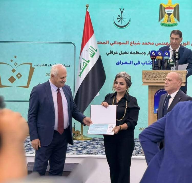 شاركت التدريسية في قسم التربية الفنية بكلية التربية للعلوم الإنسانية الأستاذ المساعد الدكتورة إيمان عبد الستار عطا الله، في عضوية لجنة تحكيم النصوص المسرحية ضمن فعاليات مهرجان "جواهريون"، الذي أقيم برعاية دولة رئيس الوزراء السيد محمد شياع السوداني وبالتعاون مع وزارة الثقافة والسياحة والآثار وبتنظيم من الاتحاد العام للأدباء والكتاب في العراق / المركز العام. اذ شهد المهرجان مشاركة نخبة من الأدباء والكتاب العراقيين والعرب الذين قدّموا نصوصًا مسرحية تنوّعت في موضوعاتها واتجاهاتها الفكرية والفنية، وتنافسوا على جوائز المهرجان التي خُصصت لتكريم الإبداع المسرحي المتميز. وفي ختام المهرجان تم تكريم الدكتورة إيمان عبد الستار بدرع الجواهري للإبداع وشهادة تقديرية. حيث تثمن عمادة كلية التربية للعلوم الإنسانية متمثلةً بالسيد عميد الكلية الأستاذ الدكتور عماد حميد احمد جهود اساتيذها في رفع اسم كليتنا من خلال المشاركة بهكذا نشاطات علمية وفنية مثمرة. #شعبة الإعلام والاتصال الحكومي - كلية التربية للعلوم الإنسانية - جامعة تكريت