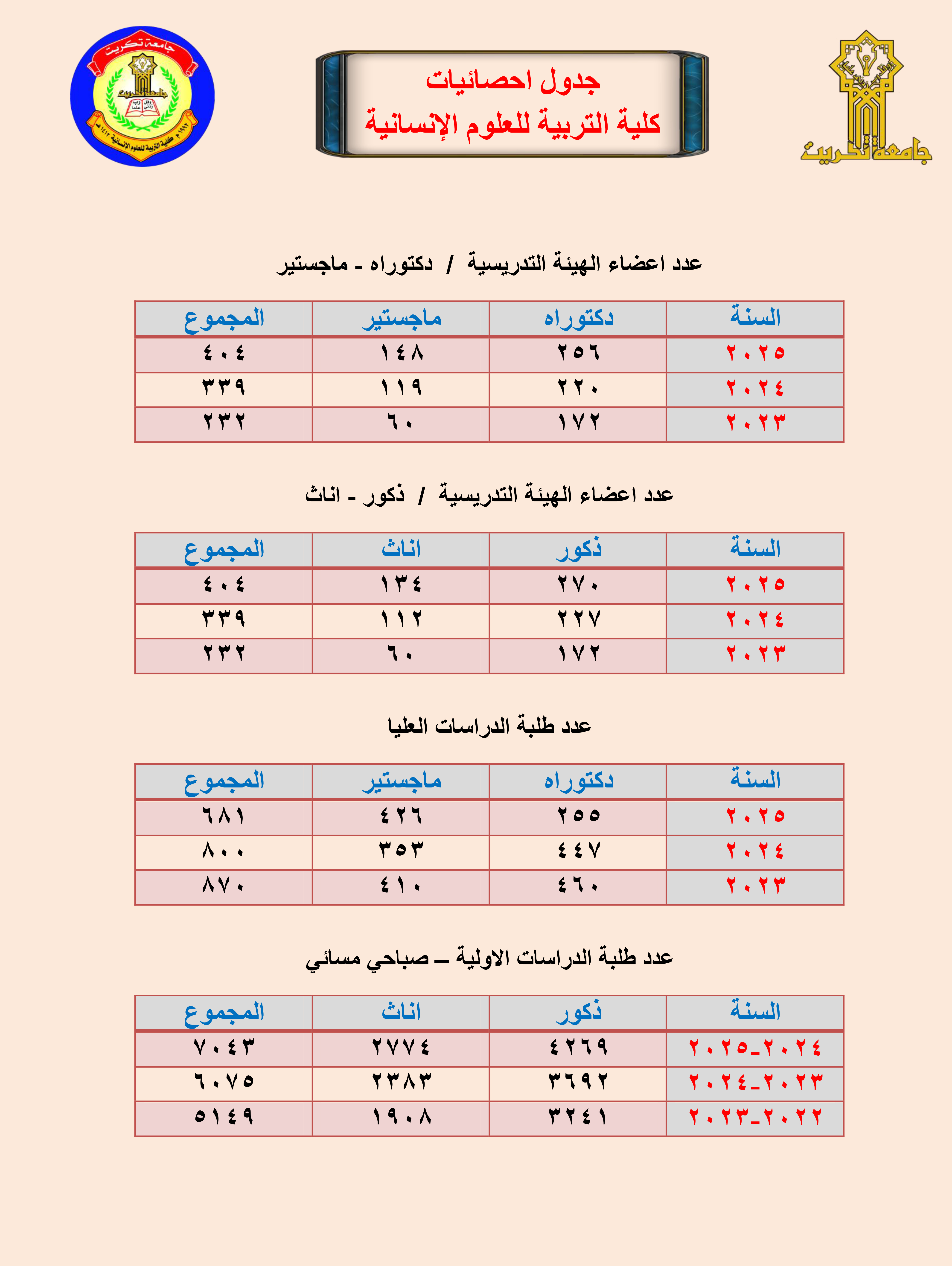 جدول احصائيات كلية التربية للعلوم الانسانية