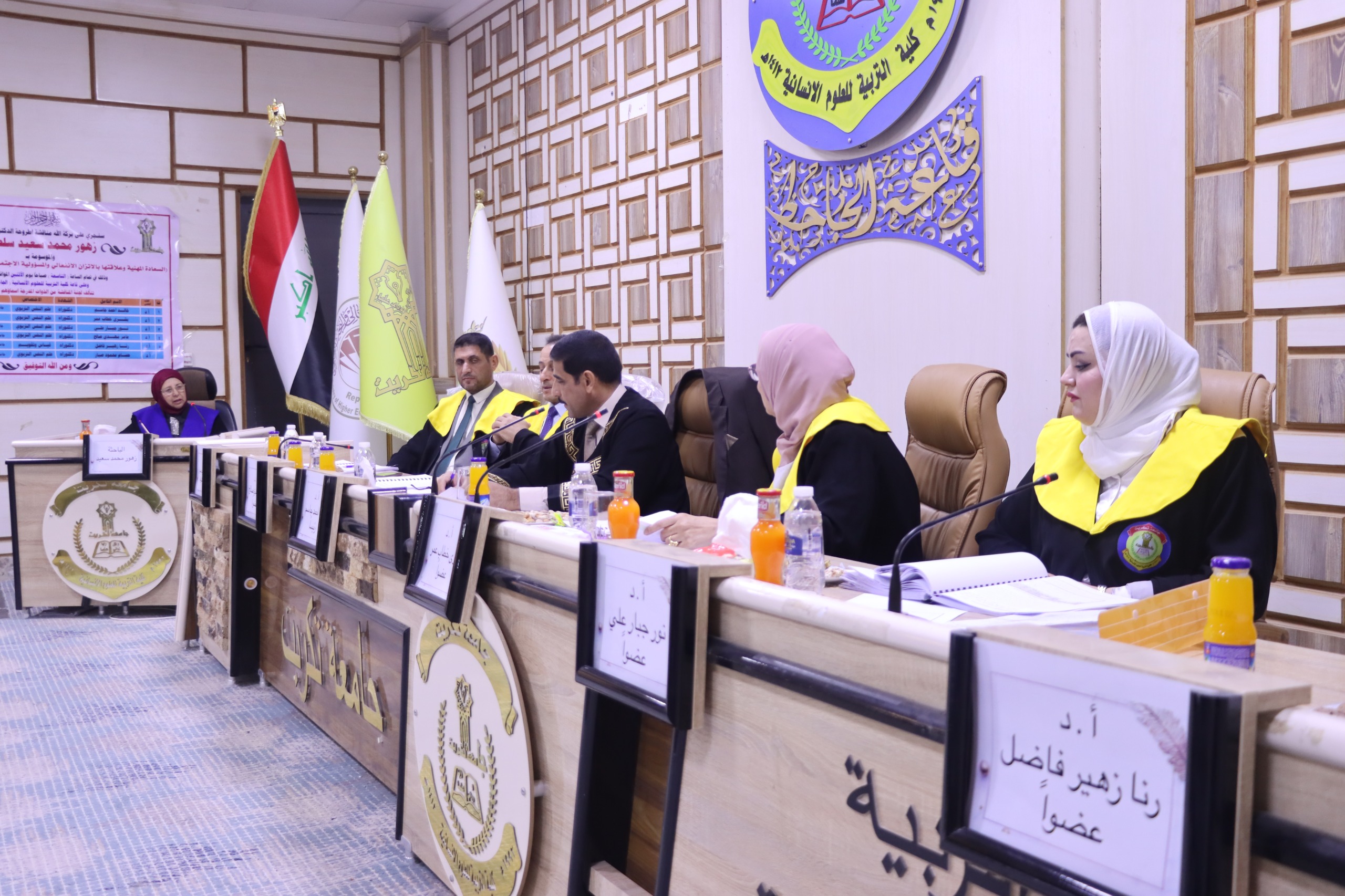 نوقشت في كلية التربية للعلوم الإنسانية قسم العلوم التربوية والنفسية اليوم الاثنين الموافق (٢٠٢٥/١٠/١٣) أطروحة الدكتوراه للطالبة (زهور محمد سعيد) الموسومة (السعادة المهنية وعلاقتها بالاتزان الانفعالي والمسؤولية الاجتماعية لدى معلموا التربية الخاصة).