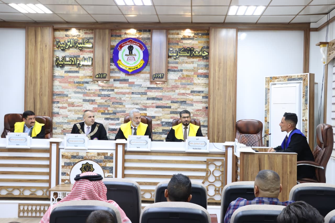 نوقشت في كلية التربية للعلوم الإنسانية قسم اللغة العربية اليوم الاحد الموافق (8/3/2026) رسالة الماجستير للطالب (مروان مخلف صالح القيسي) الموسومة (أسلوبية الفضاء عند الشعراء السود في العصر الجاهلي).