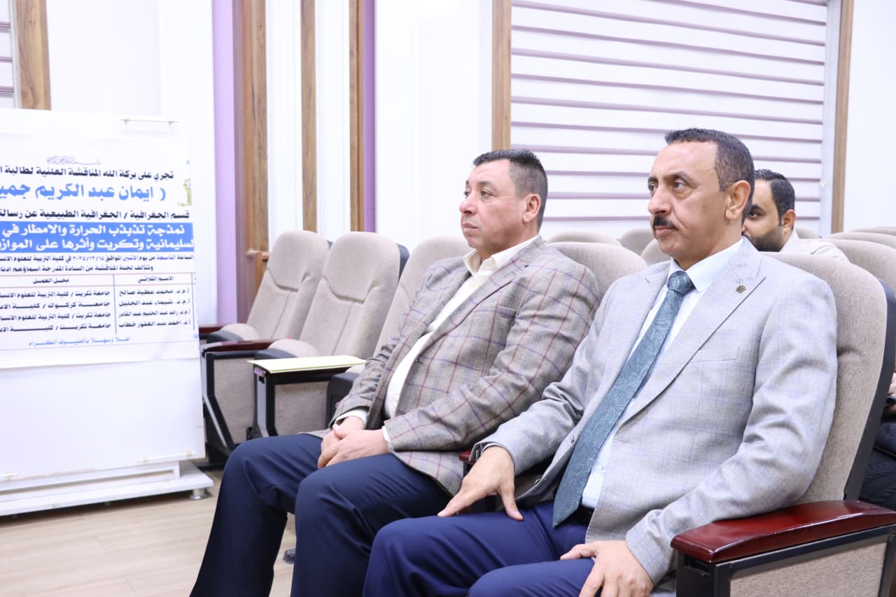 نوقشت في كلية التربية للعلوم الإنسانية قسم الجغرافية اليوم الاثنين الموافق (٢٠٢٥/١٢/١٥) رسالة الماجستير للطالبة (ايمان عبدالكريم جميل) الموسومة (نمذجة تذبذب الحرارة والامطار في محطتي السليمانية وتكريت وأثرها على الموازنة المائية).