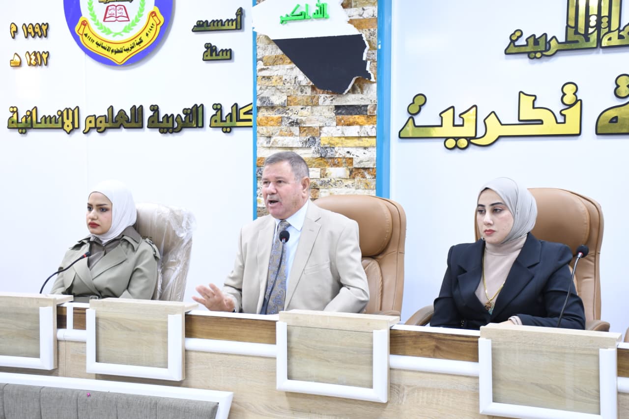 برعاية السيد رئيس جامعة تكريت الأستاذ الدكتور وعد محمود رؤوف، وبإشراف السيد عميد كلية التربية للعلوم الإنسانية الأستاذ الدكتور عماد حميد أحمد، يقيم قسم العلوم التربوية والنفسية في كليتنا ، وبالتعاون مع مركز التعليم المستمر ندوة علمية بعنوان (تمكين طلبة التطبيق من مهارات الإرشاد النفسي في البيئة المدرسية). للمدة (١٣-١٤ /١ / ٢٠٢٦) .