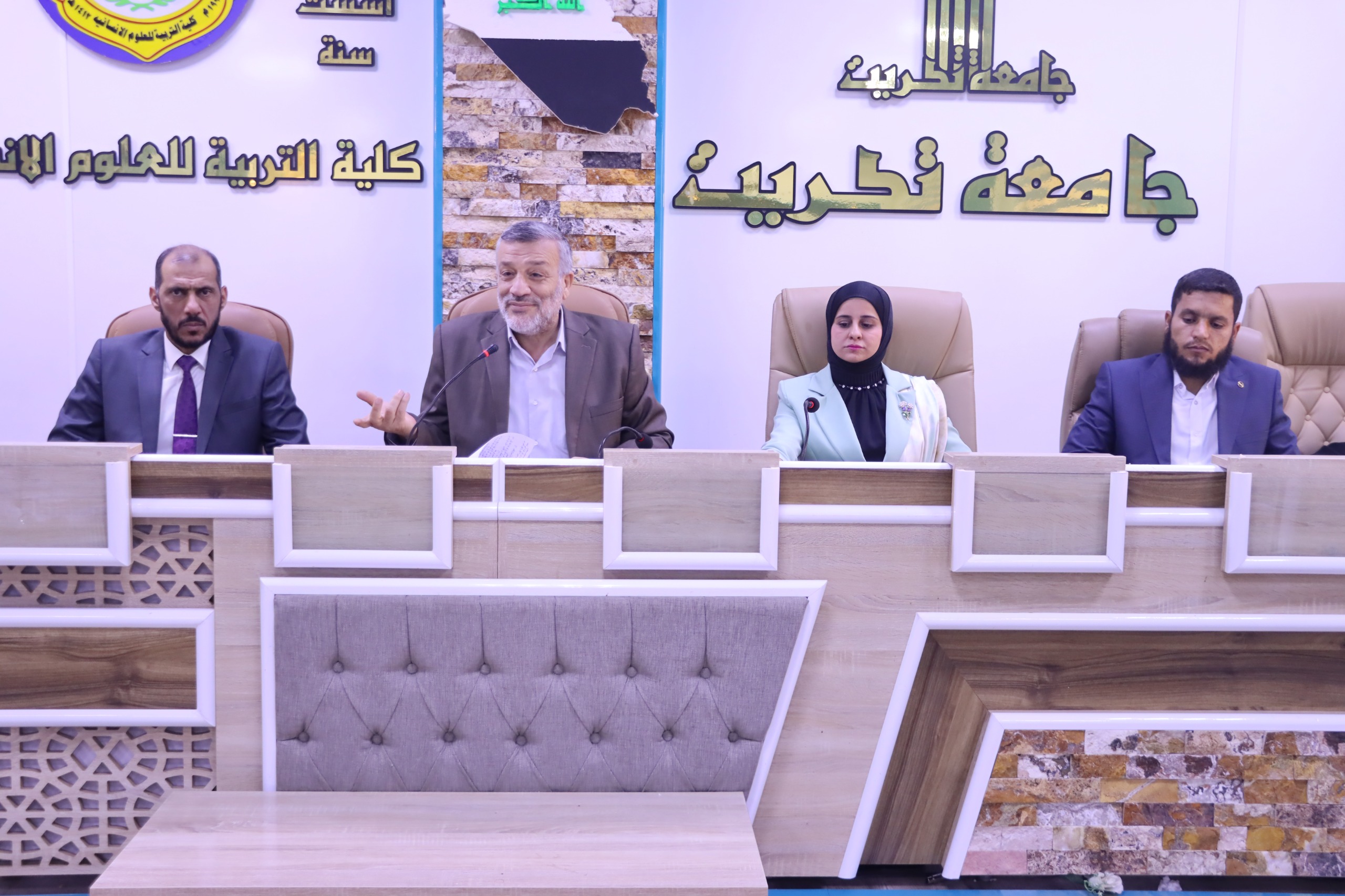 برعاية السيد رئيس جامعة تكريت الاستاذ الدكتور وعد محمود رؤوف وبإشراف السيد عميد كلية التربية للعلوم الإنسانية الاستاذ الدكتور عماد حميد احمد اقام قسم علوم القرآن والتربية الإسلامية في كليتنا بالتعاون مع مركز التعليم المستمر اليوم الأحد الموافق (٢٠٢٥/١٠/٢٦) ندوة علمية بعنوان (مفهوم الإشاعة وأثرها على الأوساط الجامعية _ نظرة شرعية) .