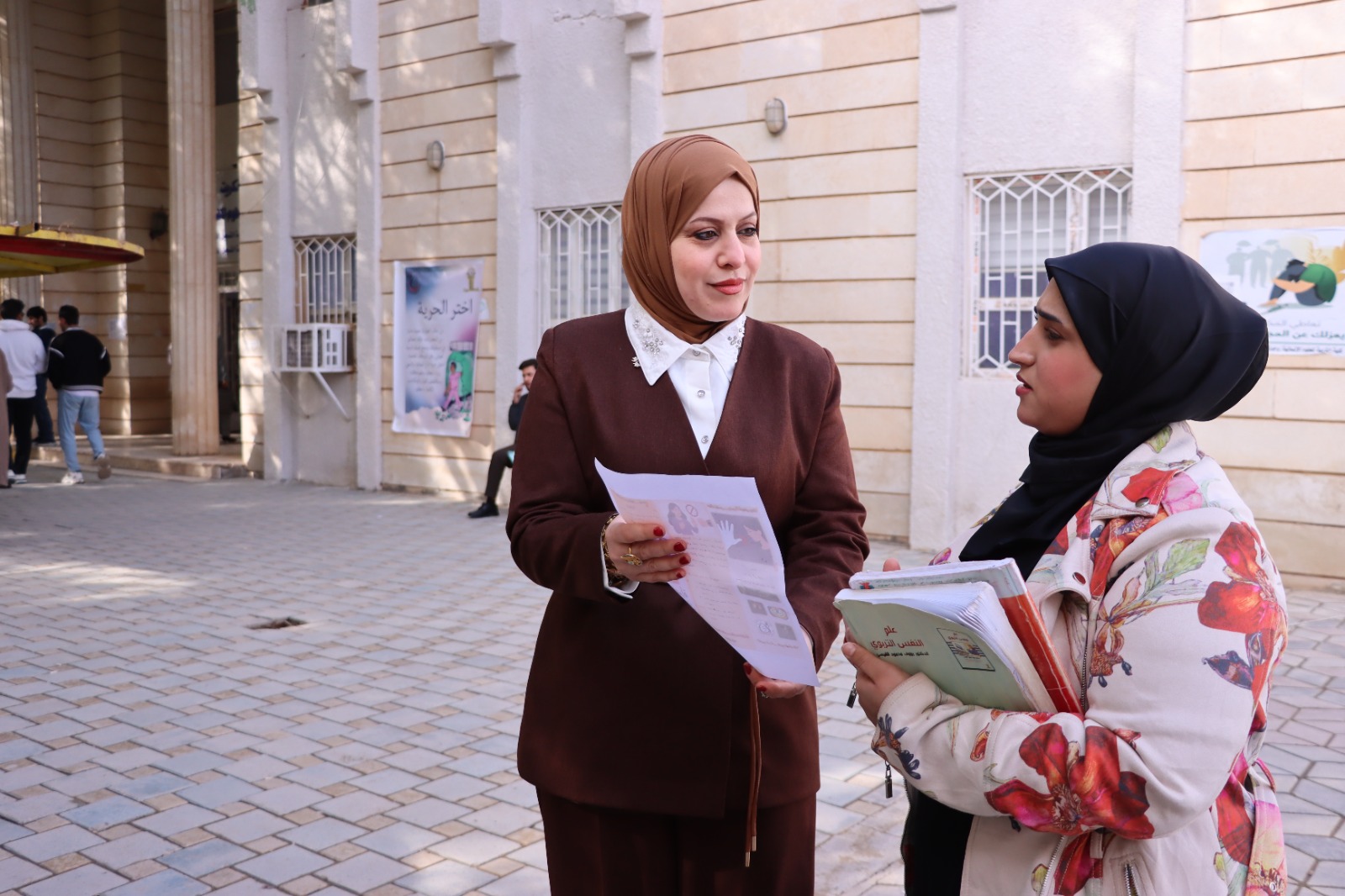 بتوجيه من السيد عميد كلية التربية للعلوم الإنسانية الأستاذ الدكتور عماد حميد أحمد، نظّمت عضو ارتباط وحدة شؤون المراة ذات الاعاقة في كليتنا المدرس الدكتورة لبنى ناجي محمد حملة توعوية بمناسبة اليوم العالمي للعنف ضد المراة ، تحت شعار "كرامة امرأة ... كرامة الوطن" اليوم الأربعاء الموافق (٢٠٢٥/١٢/١٧) .