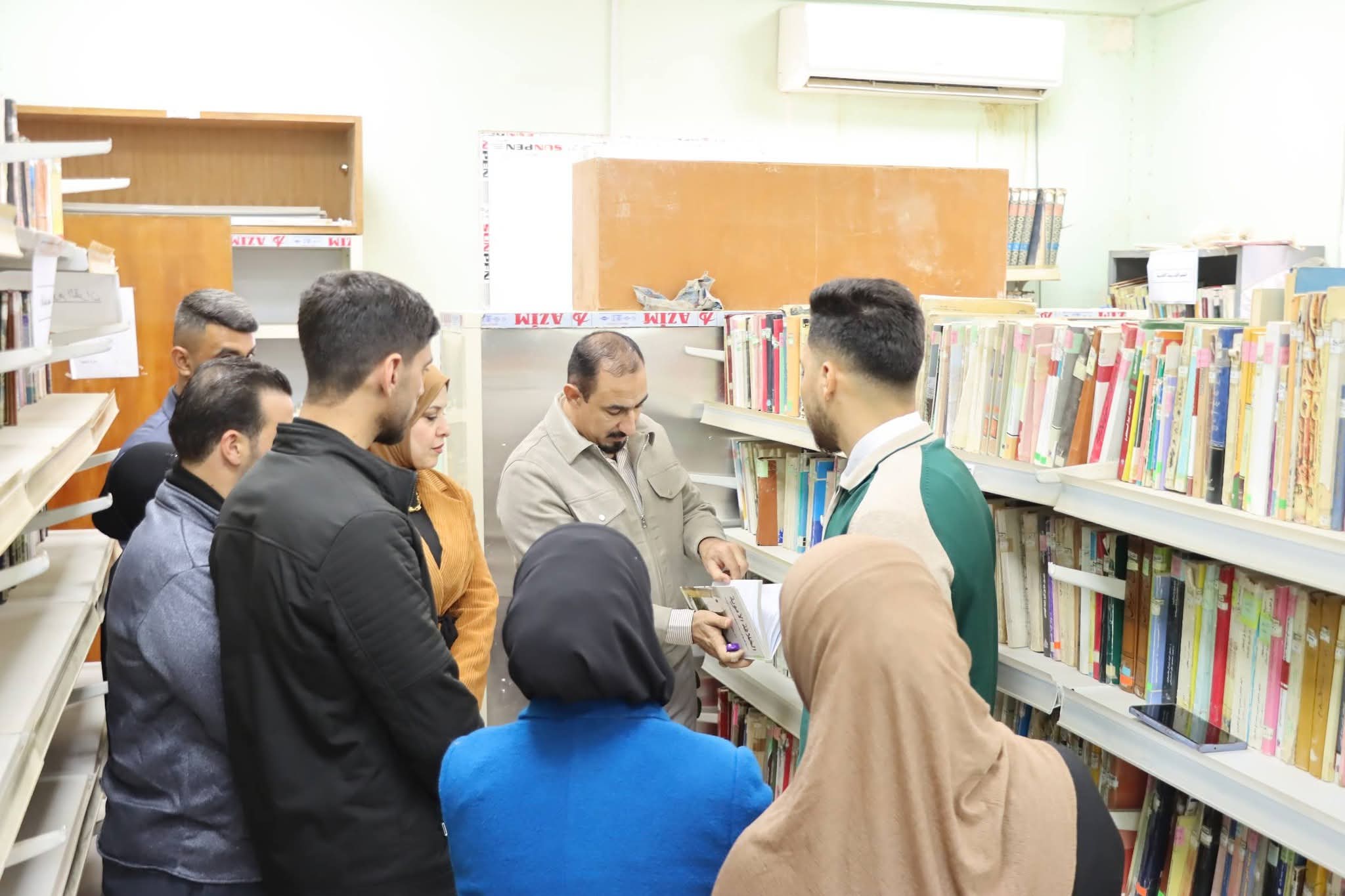وقام الطلبة بجولة داخل المكتبة، استمعوا خلالها إلى شرح وافٍ عن مكوّناتها، ونظام الفهرسة، وأساليب البحث المتاحة من قبل السيد امين المكتبة المدرس الدكتور اسعد حمود ، فضلًا عن الاطلاع على القسم الخاص بالرسائل الجامعية والبحوث العلمية وما يوفره من مصادر علمية مهمة لطلبة الدراسات الأولية والعليا.